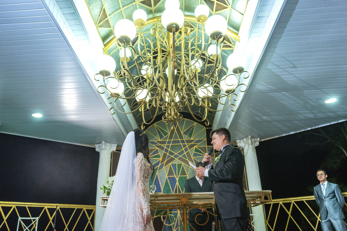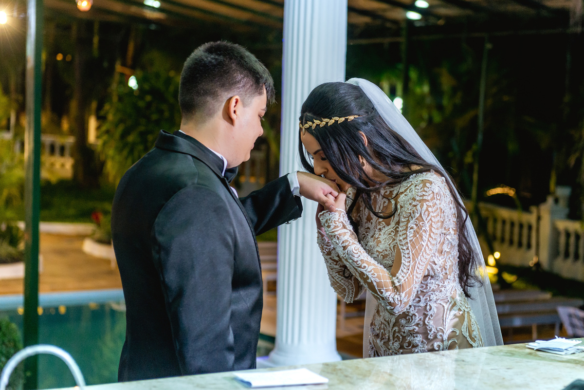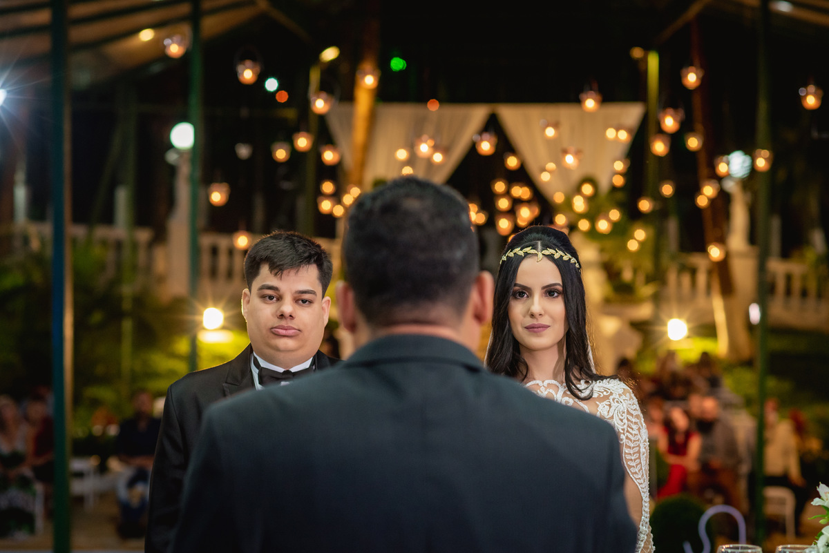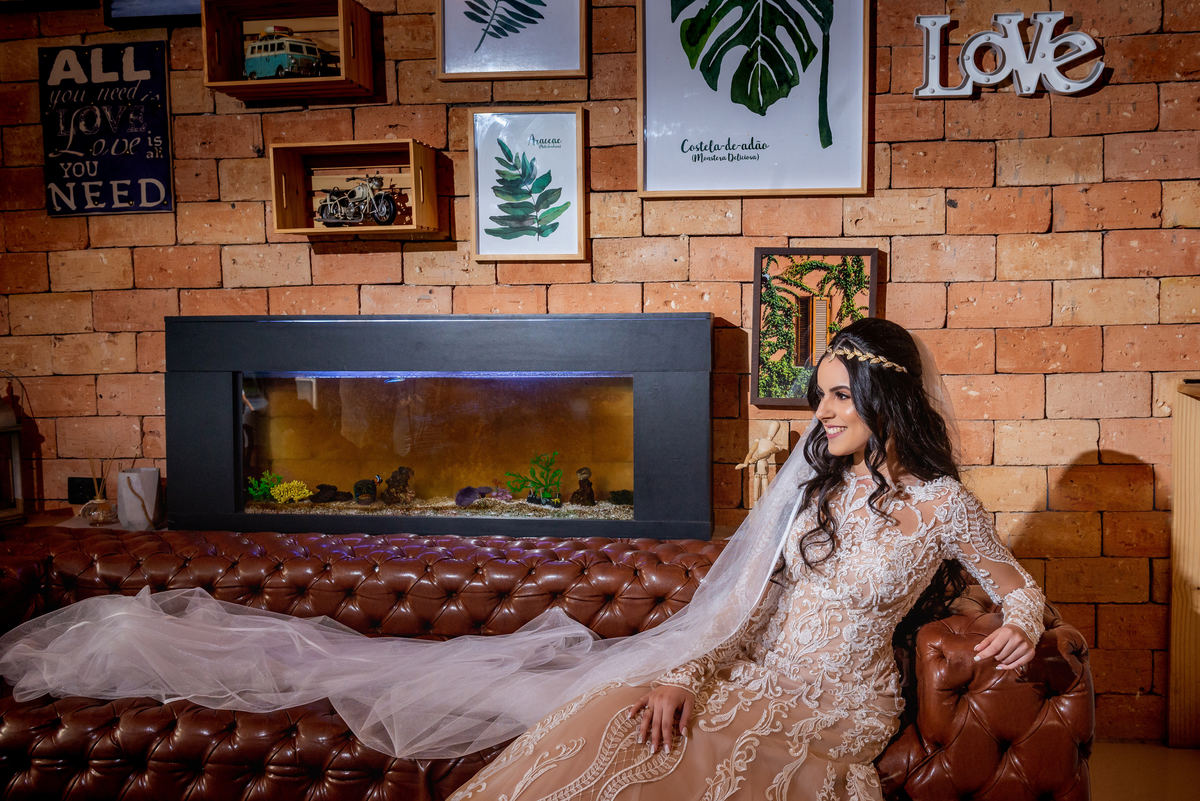 O Will&Vic são nossos irmãos em Cristo, congregamos na mesma igreja, e quando eles vieram falar conosco, eu disse para o Julio "A Vik vai ficar parecendo uma princesa de noiva", não só ela como todo o casamento foi de uma princesa, cheio de detalhes, organizado com muito cuidado e dedicação. Foi uma cerimonia linda, emocionante, toda a atmosfera do lugar era propicia a emoção, mas a entrada da noiva foi de tirar o folego, com direito a fumaça e acionamento do chafariz.